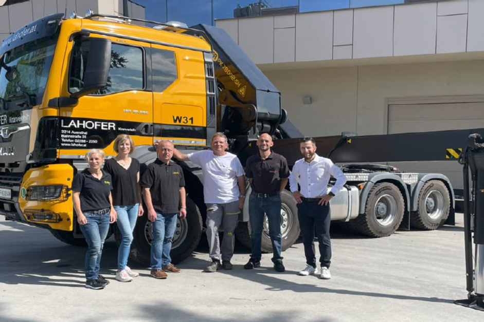 Mit dem neuen Kranfahrzeug zeigt die Lahofer GmbH, dass sie für zukünftige Herausforderungen bereit ist – mit Technik, die überzeugt, und einem starken Team, das täglich Höchstleistungen erbringt.
