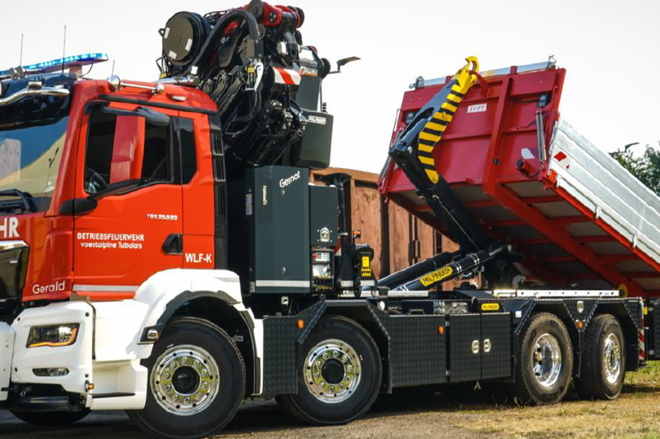 Der PK 580 TEC ist ein Paradebeispiel für das Zusammenspiel aus innovativer Technik von Palfinger und der Beratungskompetenz von KUHN-Ladetechnik. Gemeinsam mit der Betriebsfeuerwehr voestalpine Tubulars wurde eine Lösung geschaffen, die im Ernstfall Leben schützen und Sachwerte sichern kann.
